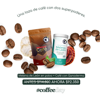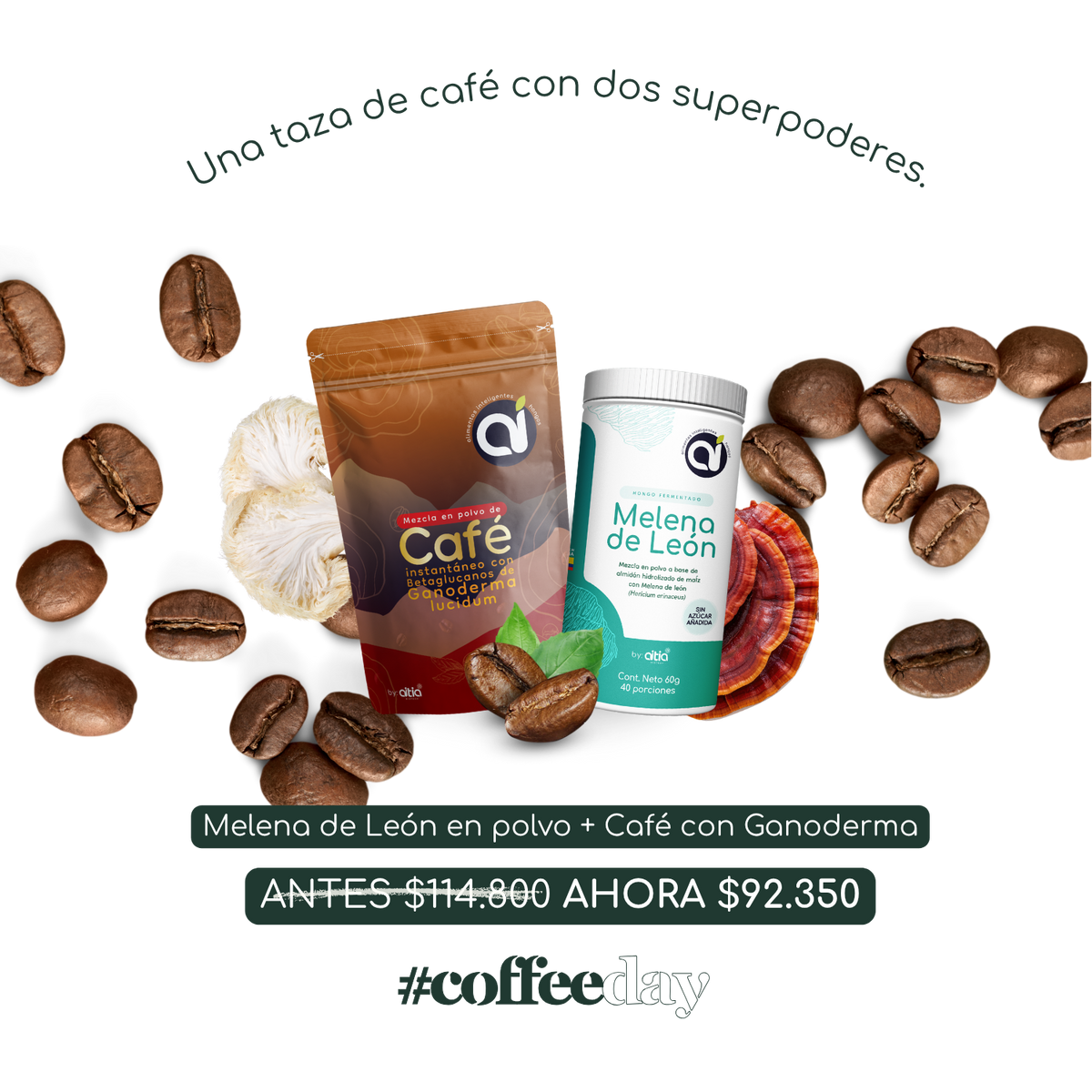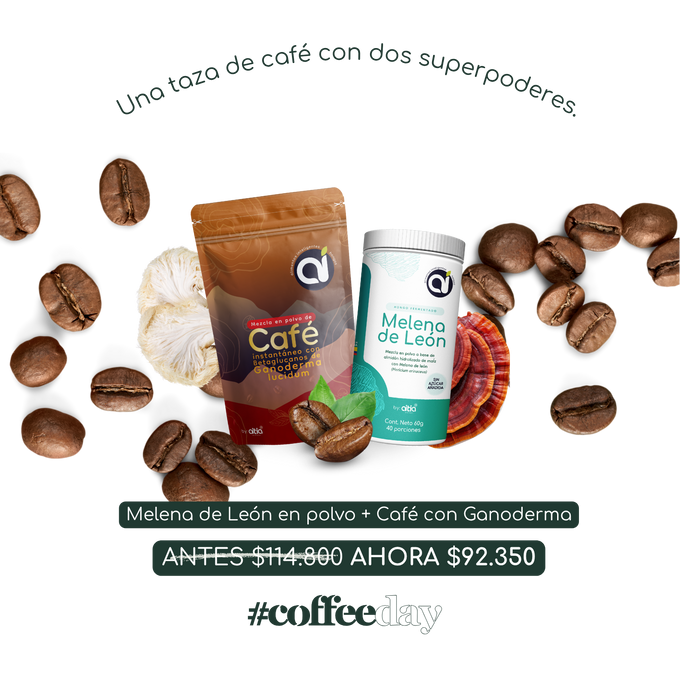 Este pack combina Melena de León en polvo, conocido como el hongo de la creatividad y la concentración, con nuestro Café instantáneo enriquecido con Ganoderma, que aporta vitalidad, antioxidantes y refuerza tus defensas.